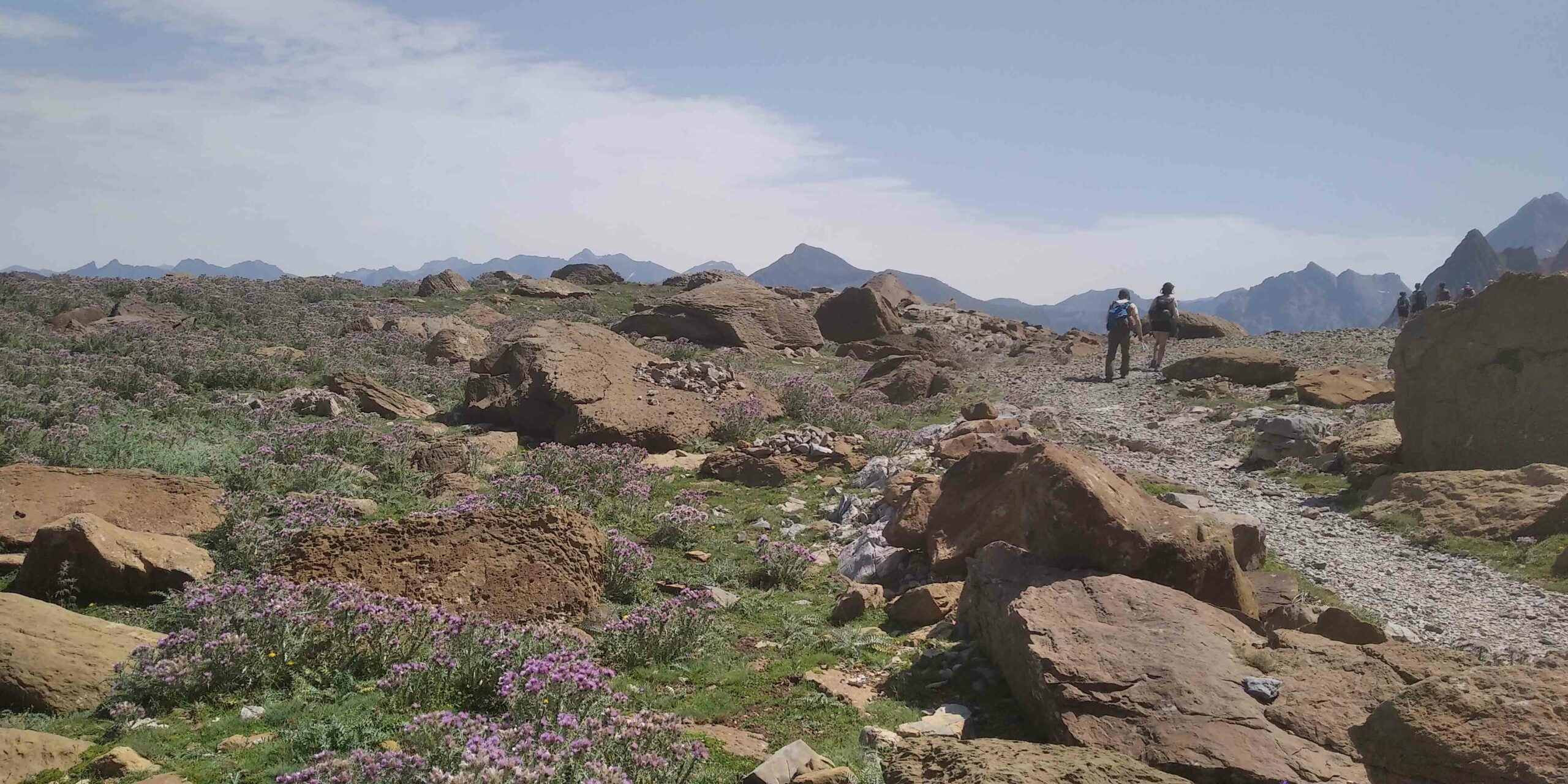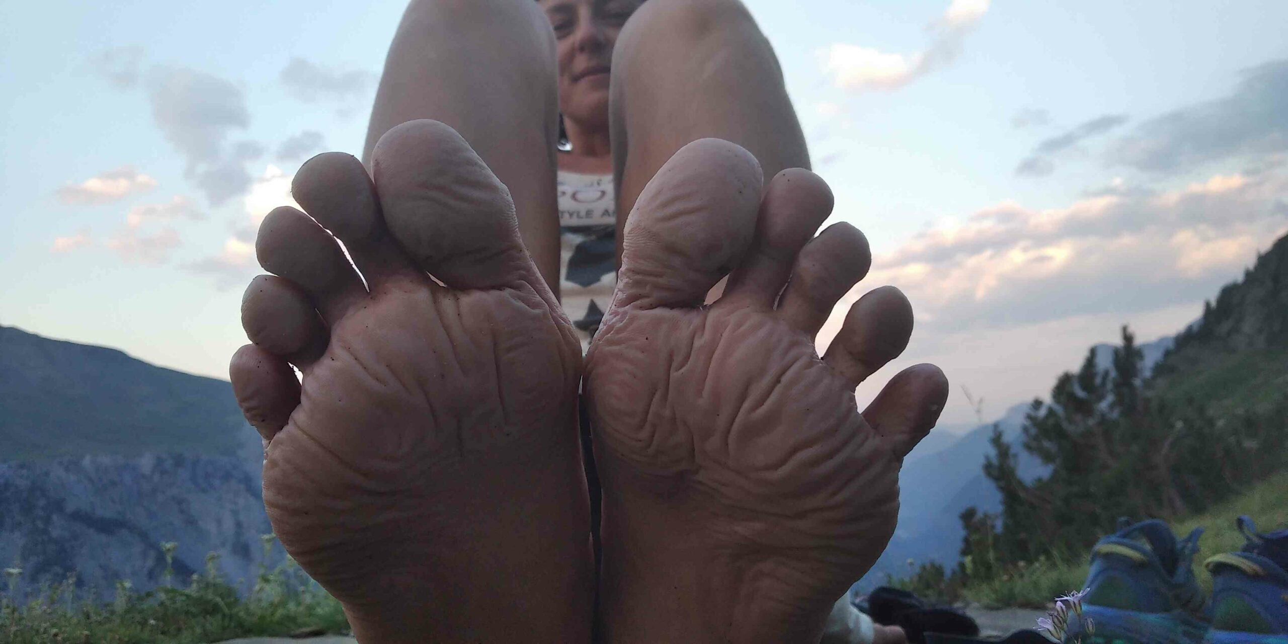 Les nuages menacent de faire tourner la météo à l’orage. On surveille d’un œil leur évolution, heureusement rien ne se passe. Au milieu de grandes dalles de roches, un ruisseau coule. Il est chaud alors, ni une ni deux, les frangins décident que c’est là une bonne occasion de se laver. Pour ma part, je me trempe les pieds en les regardant faire. L’endroit est plutôt paradisiaque, l’eau coule doucement, de bassins en bassins, elle est limpide, du moins avant notre passage ! On repart, la route est longue.